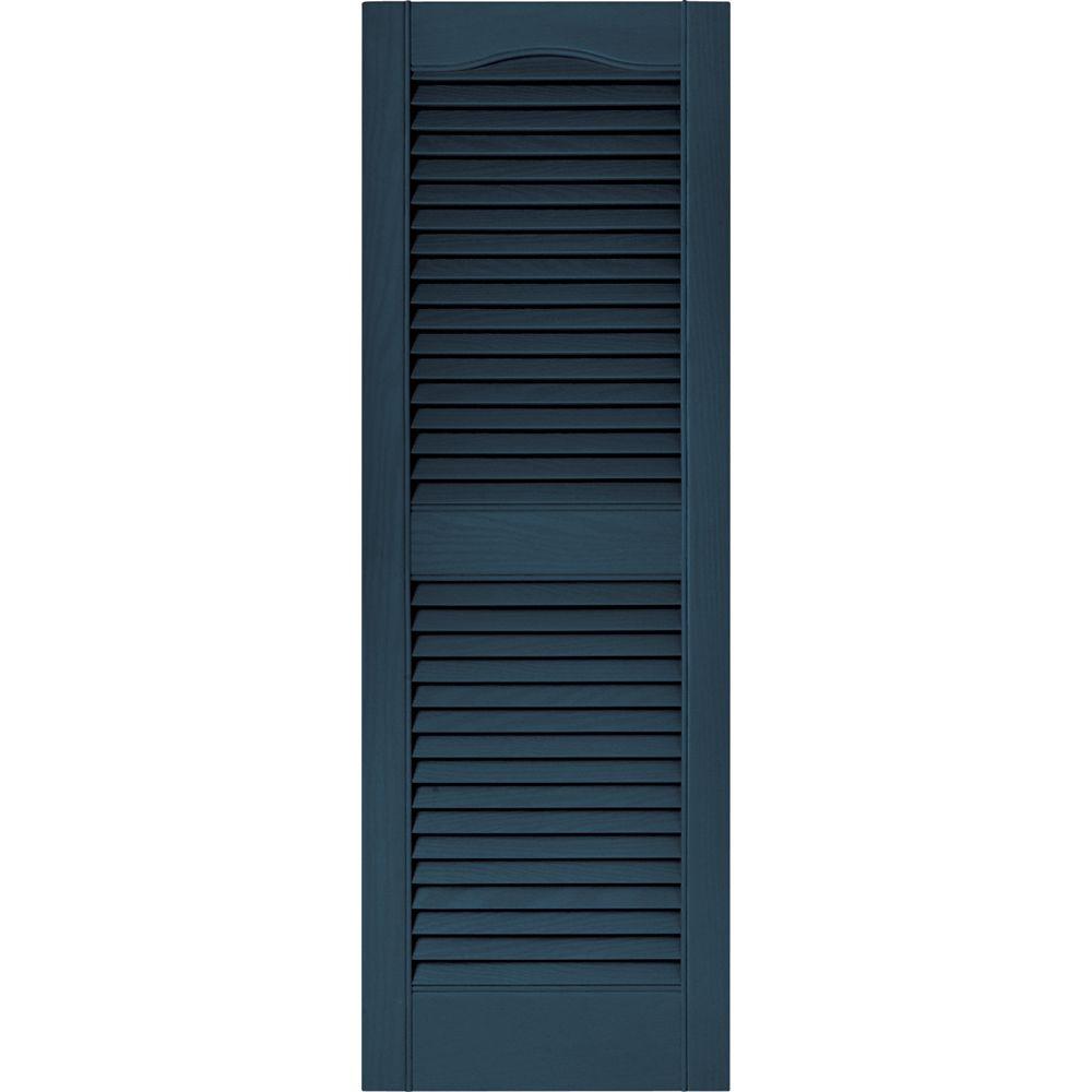 Vinyl louvered shutters in white set of 2 14 5 in. 14 wide straight top closed louver one piece shutters. Ekena millwork 15 in. Severe weather 2 pack 14 5 in w x 62 5 in h midnight blue louvered vinyl exterior shutters.